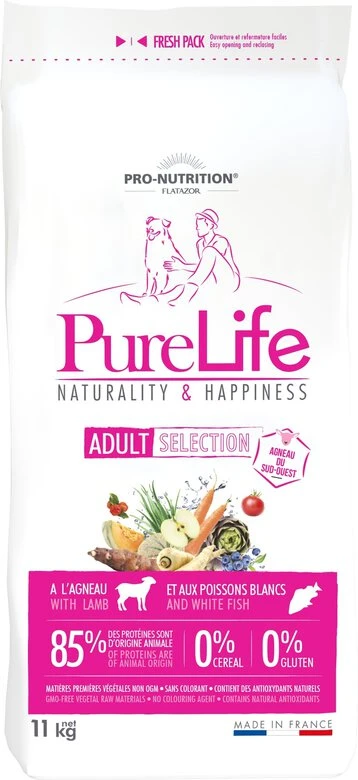Parce que vos chiens et vos chiens mĂ©ritent de manger ce qui leur convient le mieux, les aliments Pure Life de Pro-Nutrition sont parfaitement adaptĂ©s Ă leur vĂ©ritable nature avec 85% de protĂ©ines d’origine animale, pour garantir leur Ă©panouissement au quotidien. Chaque aliment est formulĂ© sans cĂ©rĂ©ale et sans gluten, pour une parfaite digestibilitĂ©, et intègre un noyau de fruits et lĂ©gumes permettant d’obtenir une richesse en diffĂ©rents nutriments pour un Ă©quilibre nutritionnel optimal et favoriser ainsi leur bien-ĂŞtre.