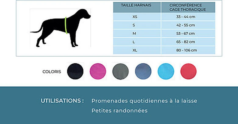 D’une ergonomie parfaite, il respecte et suit le libre mouvement du chien actif. Un Ă©lastique ventral permet d’accompagner l’amplitude de la cage thoracique pour une meilleure respiration. Deux points d’attache mĂ©talliques, un anneau traction situĂ© entre les omoplates et un anneau anti-traction sur le poitrail ont une fonction Ă©ducative pour l’apprentissage de la marche en laisse. Le tissu mesh intĂ©rieur est doux et respirant, sa mousse Ă©paisse amĂ©liore le confort du harnais et prĂ©serve le chien d’Ă©ventuelles blessures.
