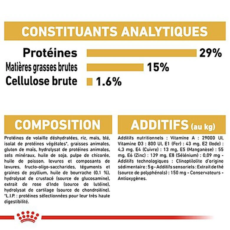 DEVELOPPEMENT MUSCULAIRE ET OSSEUX : Aide à soutenir le développement musculaire et osseux grâce à une teneur adaptée en protéines et des niveaux adaptés en calcium et phosphore. Cette formule contient de la L-carnitine.