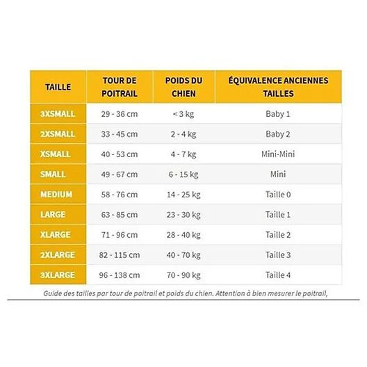 Très facile à mettre sur votre chien, le harnais s’enfile par la tête et non par les pattes comme les harnais standards. Il existe en plusieurs tailles pour un ajustement parfait (voir le tableau dans les visuels du produit) et également en différents coloris.