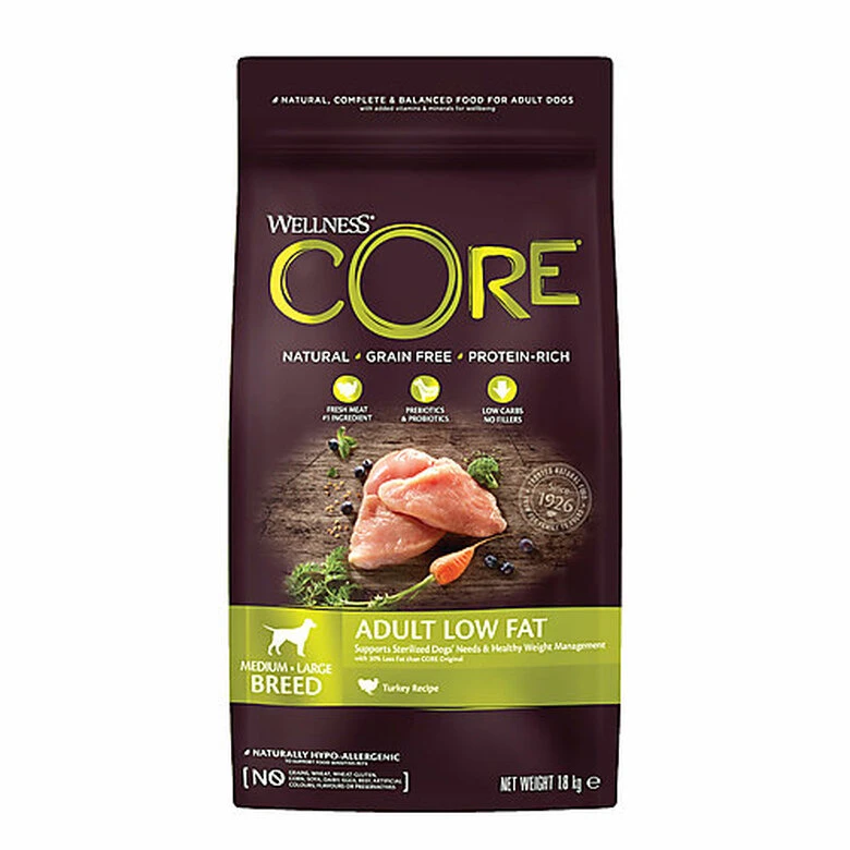 Les croquettes Wellness CORE Light Dinde sont spécialement conçues pour les chiens adultes stérilisés ou ayant tendance à prendre du poids.